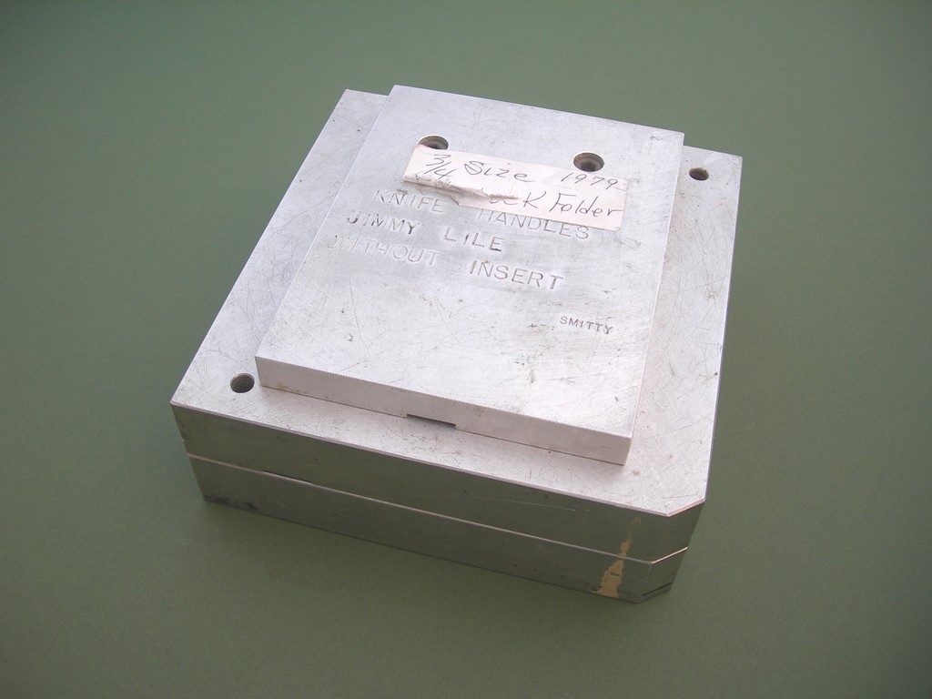 Summary: the last of four button lock molds for sale. There were two large button lock molds and two small molds, three sold and this is the last one. This was the mold used for the small button lock (labeled 3/4 size), apparently made in 1979. Rare and collectible Lile item? Oh. Hell. Yes.