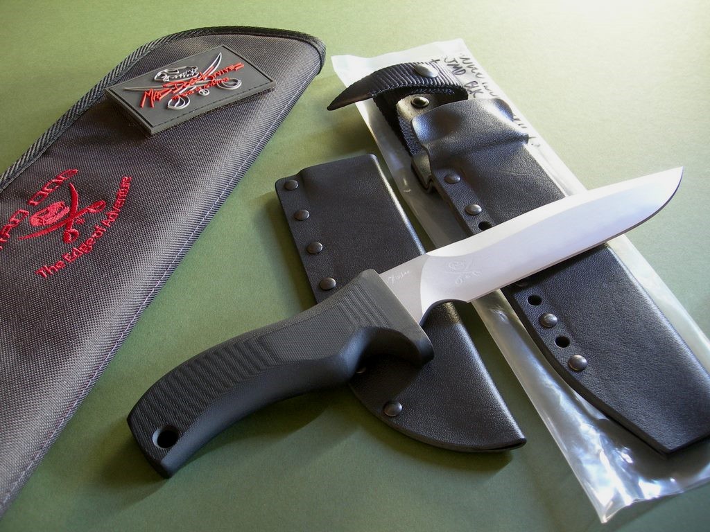 7 photo's for review -- as shown, a new Mad Dog Knives carry case and patch both included. This is a very cool knife and popular Mad Dog model, none of these VH's floating around with custom choil and two sheaths. Perfect for carry or long term collection / investment purposes. Thanks and good luck.
