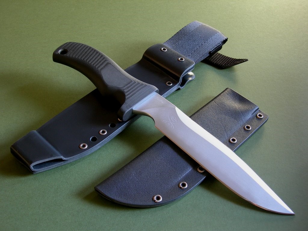 The knife comes with two MD-issue kydex sheaths: one right-side carry black ATAK, and one thin / conceal carry slip sheath. Brand new / mint condition.