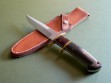 The sheath is presumably original to the knife and has never been on a belt. Maker unknown (sterile), the sheath is in excellent condition with light scuffs / handling marks and a dent at the throat from past knife storage.