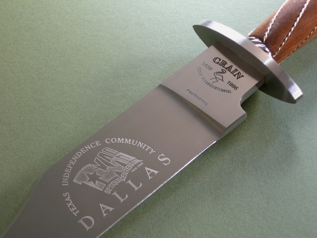 Summary: this is a near 40 year old original Jack Crain Bowie knife made to commemorate the Texas Sesquicentennial 1836-1986 and is... wait for it... the PROTOTYPE. The photos tell the story... it's awesome.