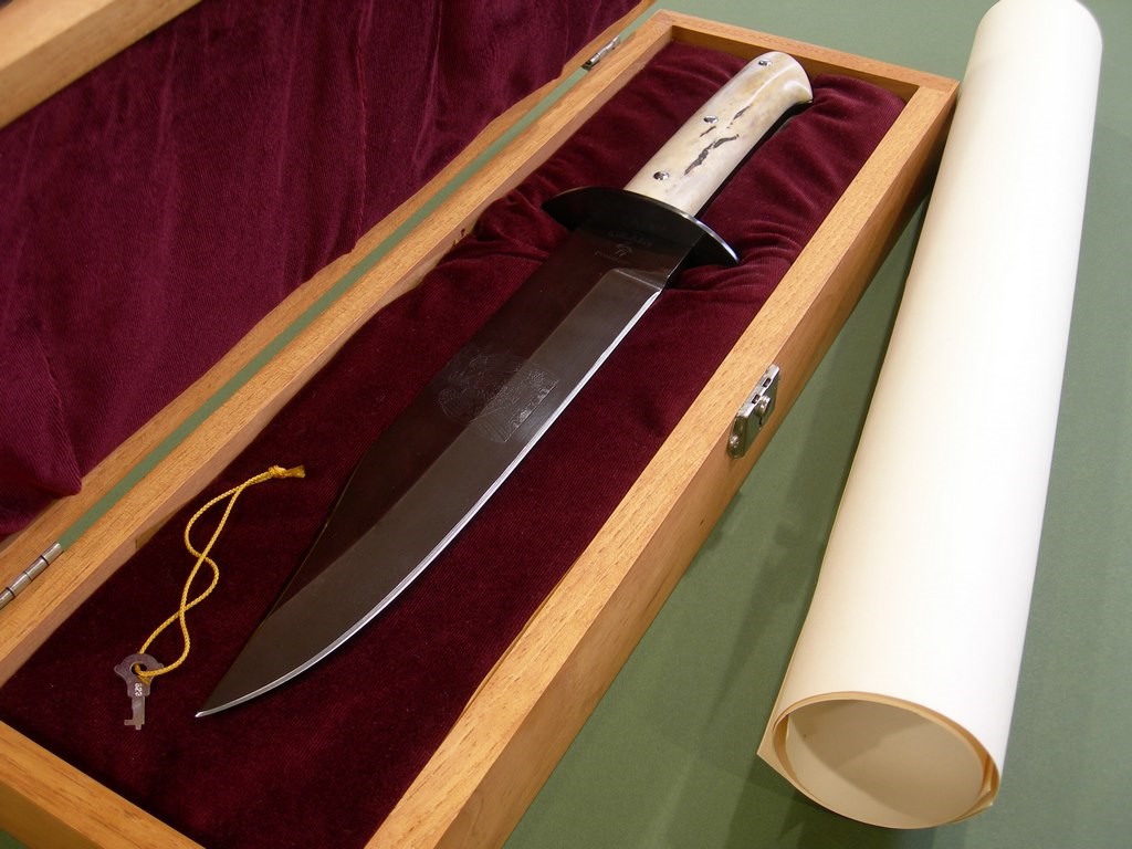 11 photos for review -- this is an incredibly rare Bowie with historical information about Noah Smithwick etched on the back side of the blade. A centerpiece in most every knife collection, a must have for discerning Bowie knife collector. Thanks and good luck.