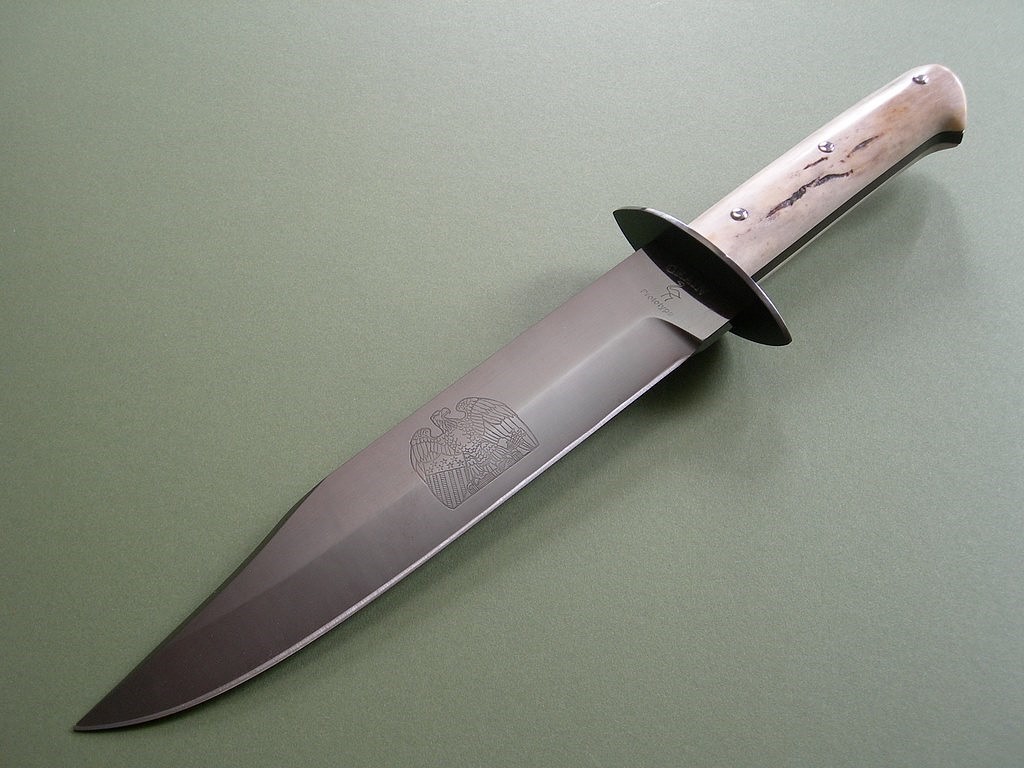 The knife features a 10-5/8" blade and is 16-1/2" overall length. Made from 1/4" blade stock with false (unsharpened) upper clip, full tang construction and a beautiful pinned wood handle. Blade markings and etching as shown in the photos, I've no idea if any other "NOAH SMITHWICK" Bowie knives were made.