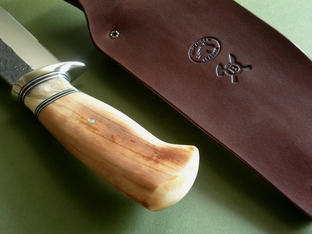 The knife was custom fitted to a super nice riveted leather sheath made by Amy over at Warlander Leather. Quality and look / design both exceptional, the sheath is in near mint condition with one small scuff on the back.