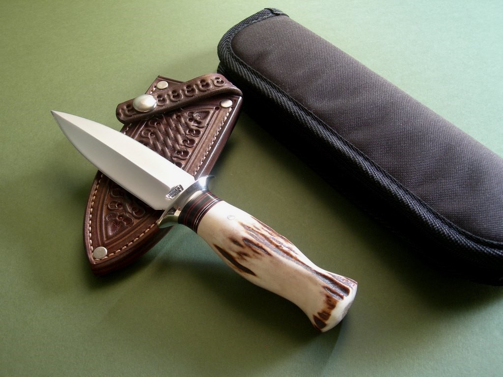 This dangerous little darling has a 4-5/8” double edged blade, nickel silver hilt, short spacer stack and awesome stag handle. The knife is in near mint condition with original edges, nothing but a few light wipe marks on the nickel silver guard. The knife sells itself… it’s awesome.